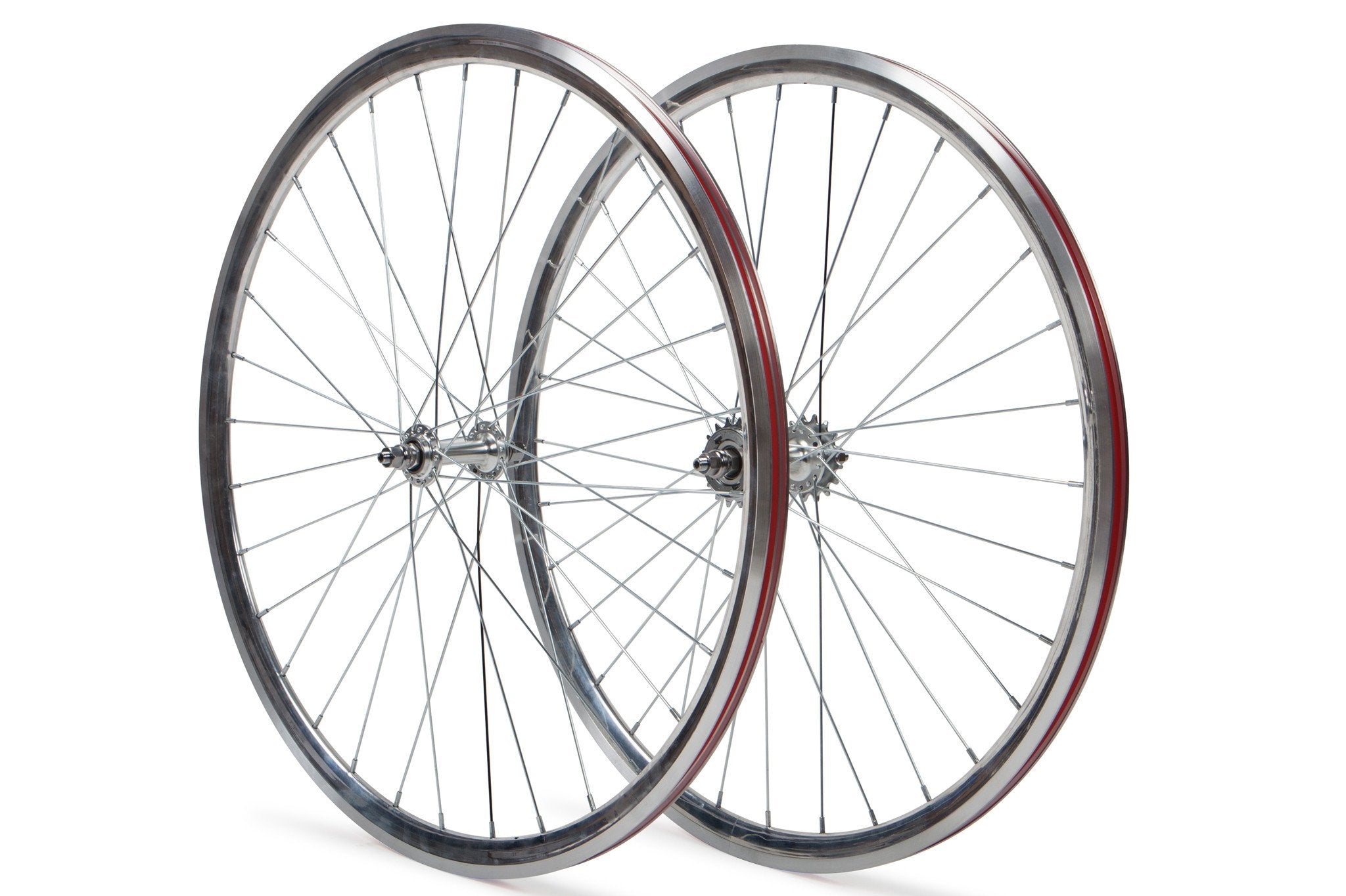Our rear wheels include flip-flop hubs with a pre-attached 16T fixed cog, along with a 16T freewheel cog for single-speed riding. Front and rear wheels have 32 spokes each and all wheelsets include nylon rim-strips to protect against sharp edges and prevent tube puncture.